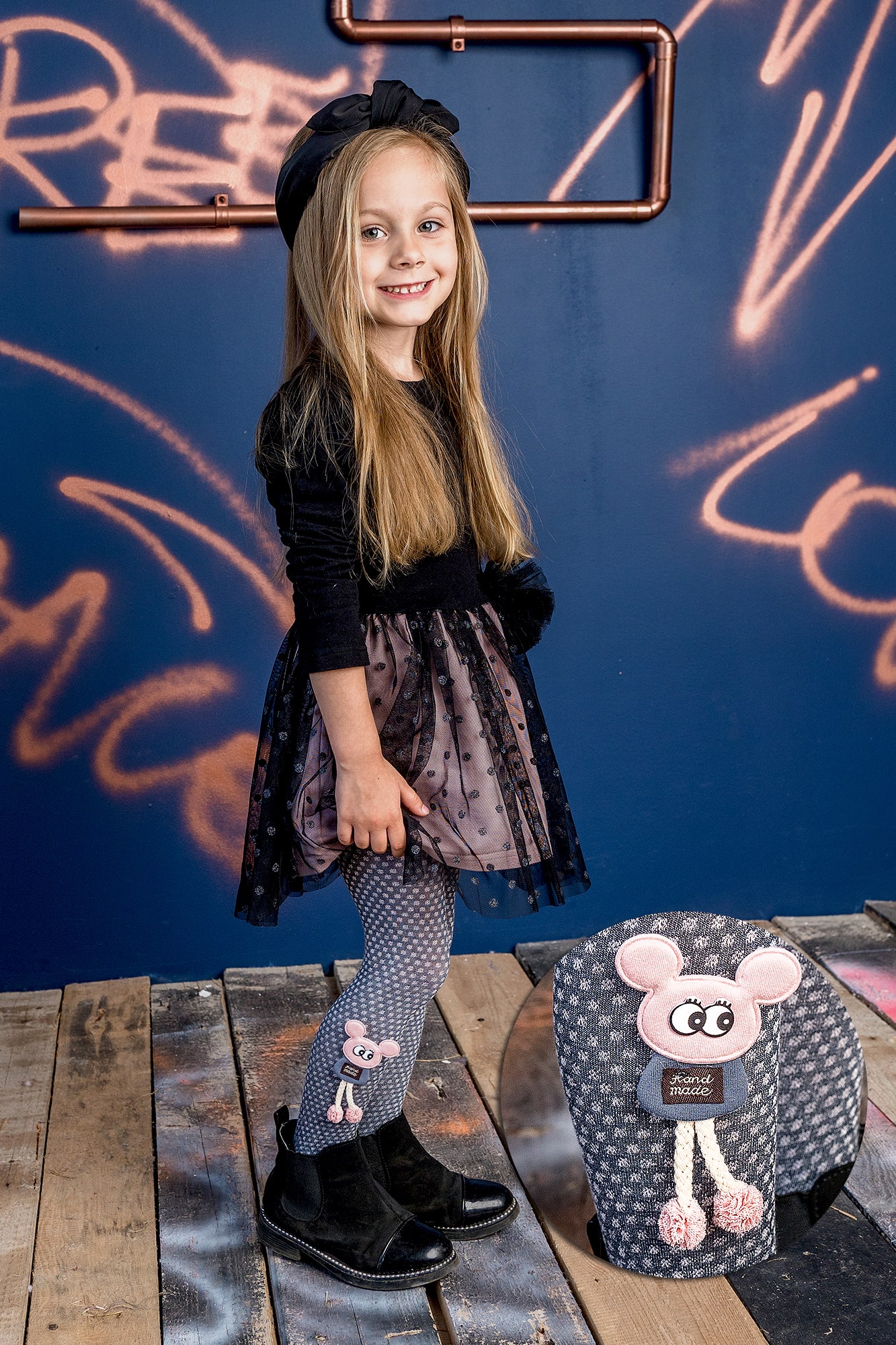 Rajstopy dziewczęce z doszytą aplikacją myszki MIRABELLE