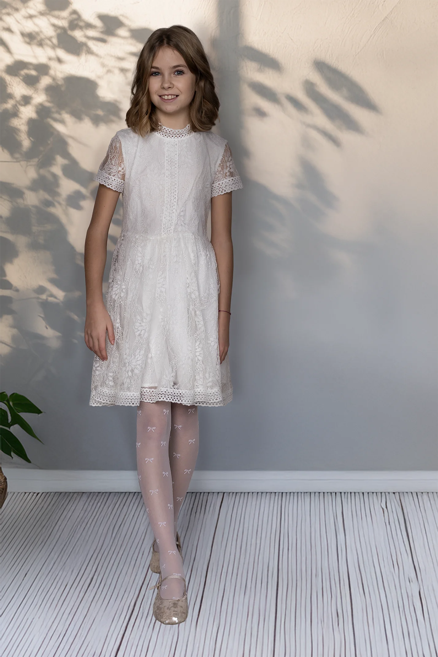 Dziewczęce rajstopy we wzór w kokardki Angelina