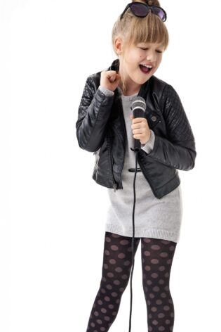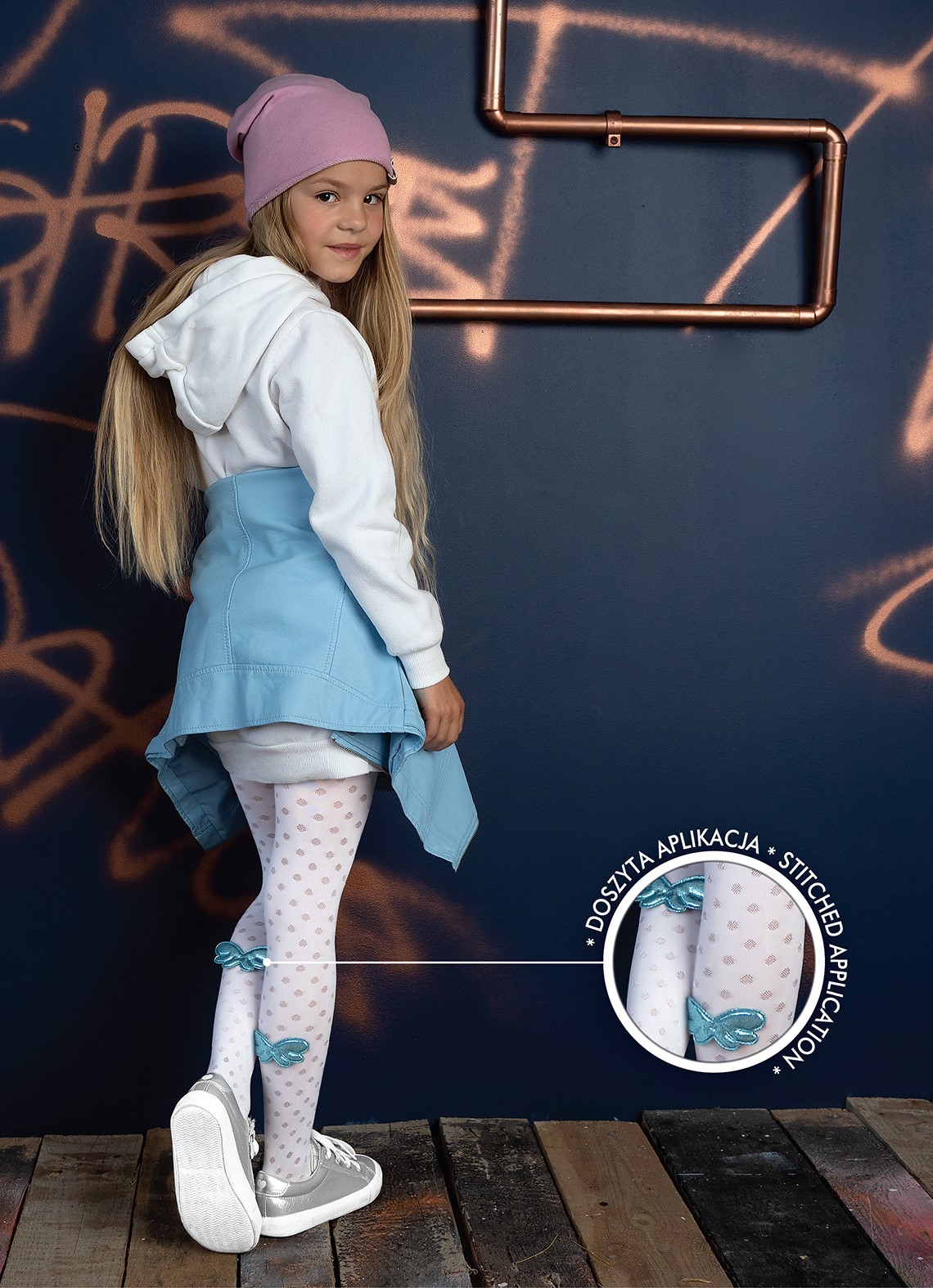 Rajstopy dziewczęce wzorzyste #ELODIE z doszytą aplikacją DR 2220