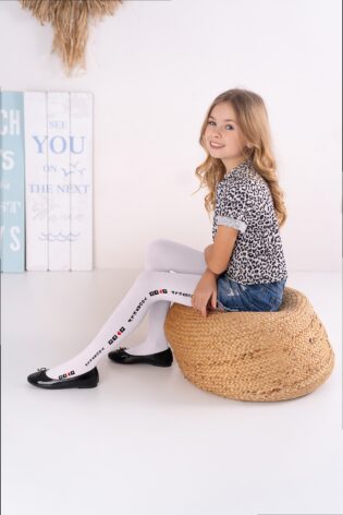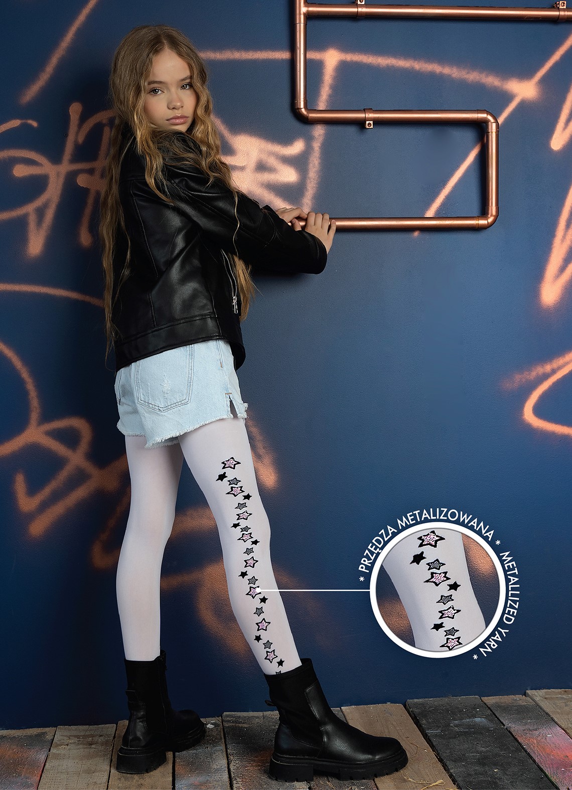 Rajstopy dziewczęce ze wzorem z boku -gwiazdki z dodatkiem nici metalizowanej #NIA DR 2223