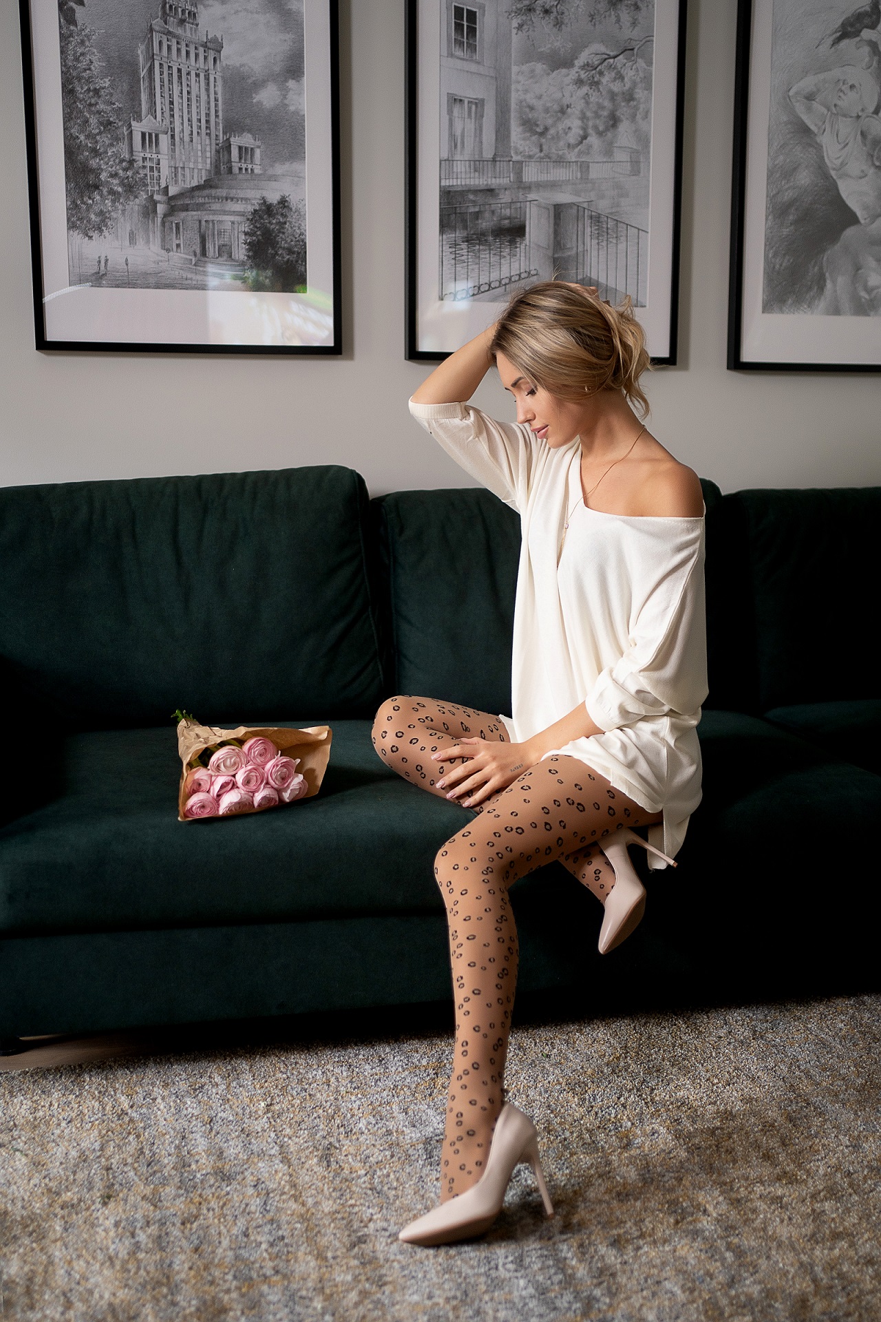 Rajstopy z lampasem w panterkę 20 den Flexy