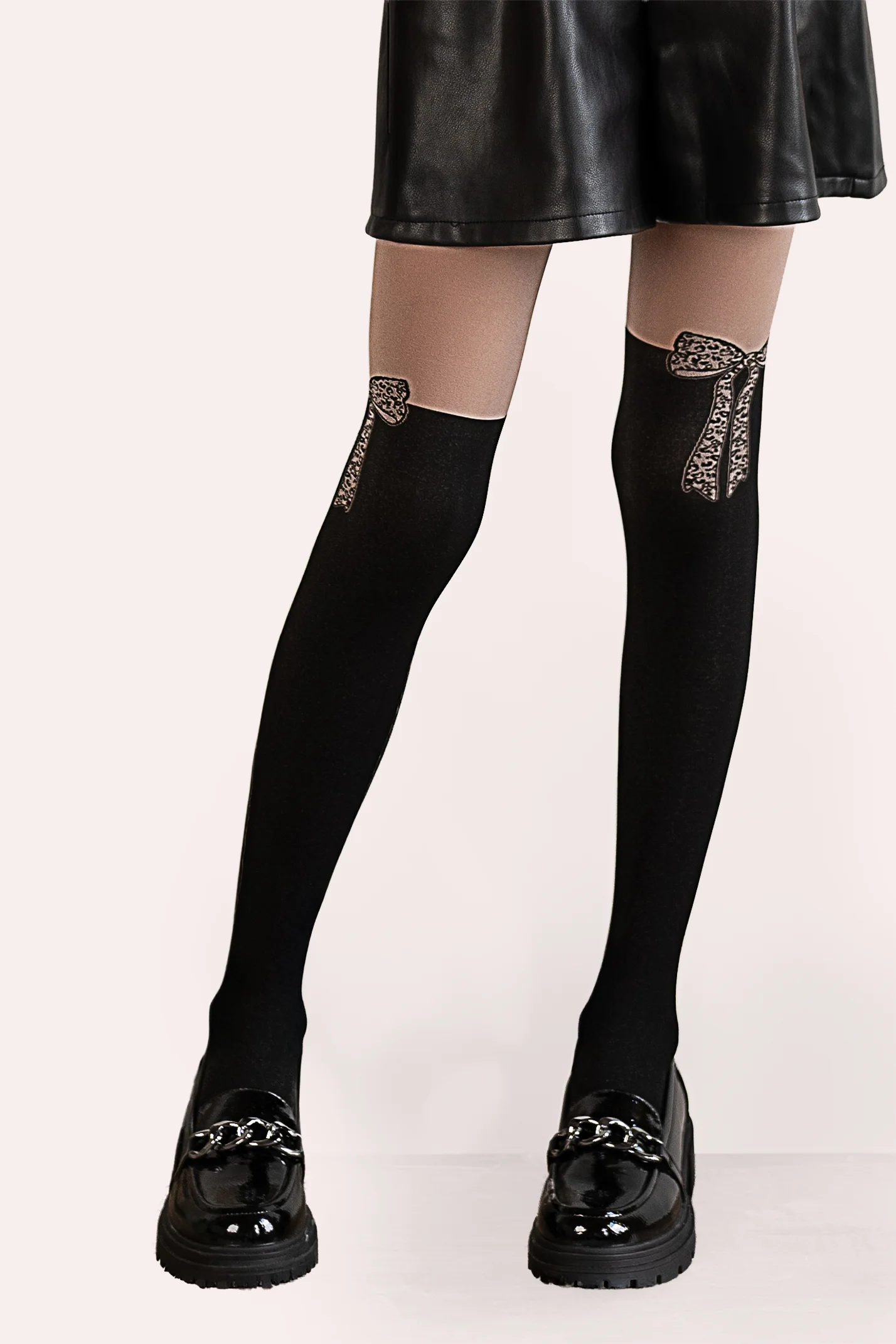 Dziecięce rajstopy wzorzyste z kokardą SAFARI TWIST