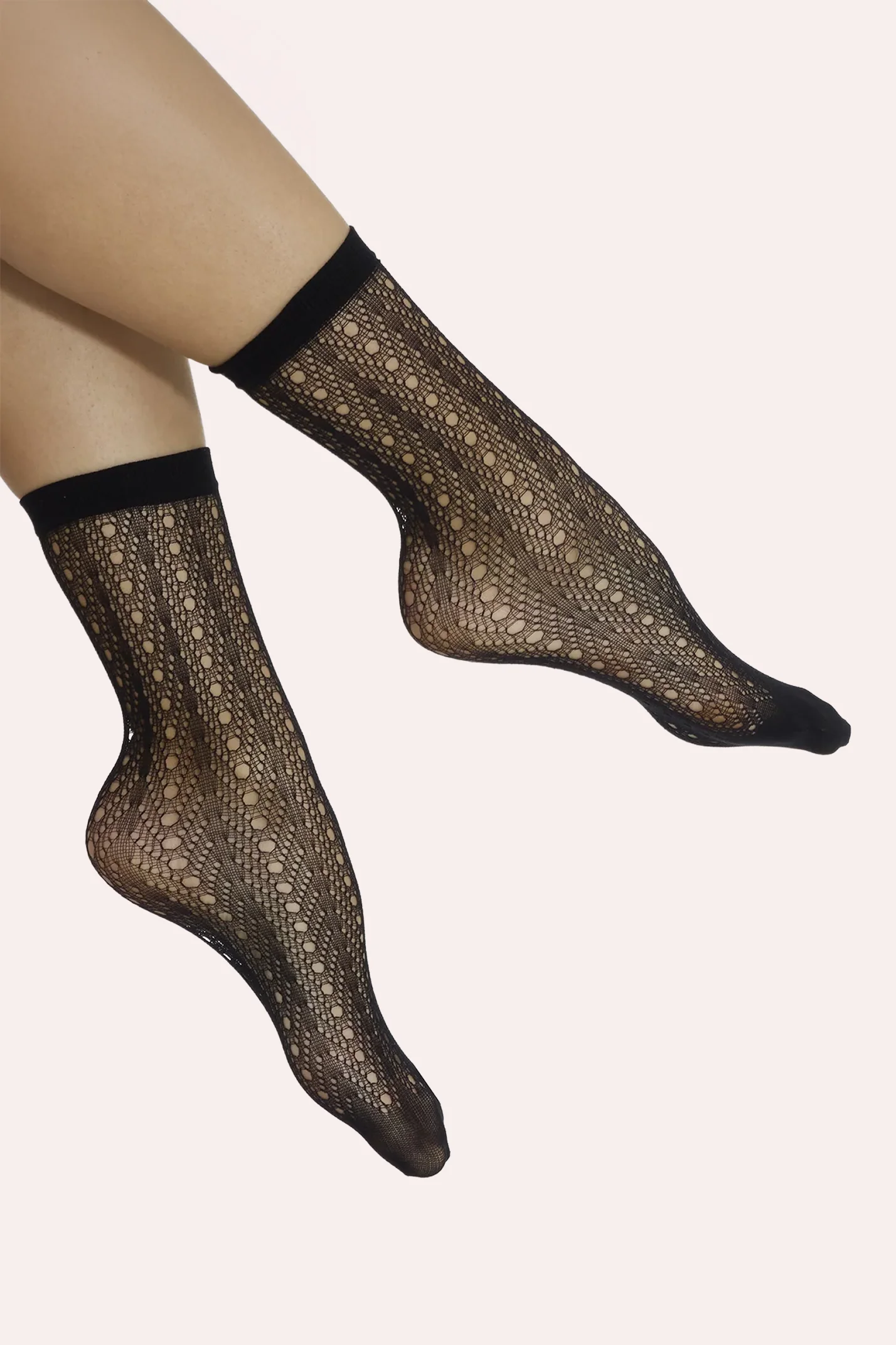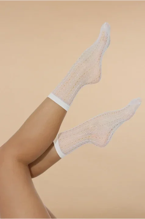 Skarpetki damskie w serduszka na drobnej siateczce HEARTS