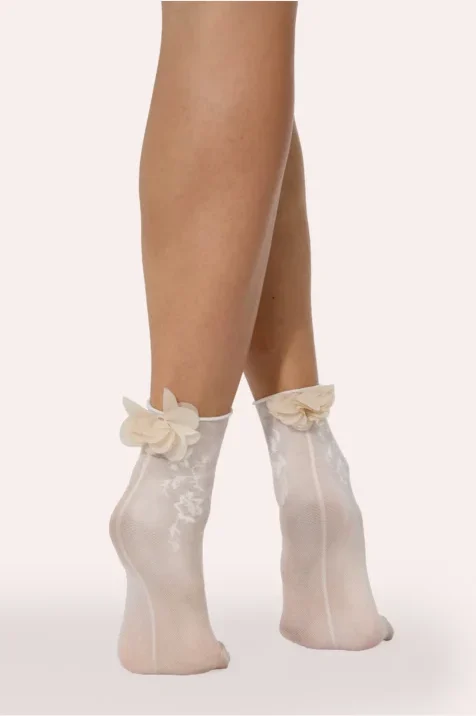 Skarpetki koronkowe w kwiaty z doszytą aplikacją Bloom